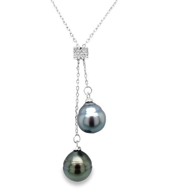 Halskette Sterlingsilber mit 2 Tahiti-Perlen 10 mm
